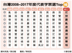 茫字成最能形容2017年台湾景况的字。(图片来源:台湾《联合报》) 近日,台湾年度代表字大选公布结果:茫字以12445票排名第一,成为2017年的年度代表字,劳字紧随其后,据悉,忧...