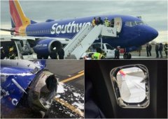 美国西南航空一架波音737客机,17日在3万英尺高空发生引擎爆炸意外,碎片击破一扇窗户,造成一名女乘客“部份身...