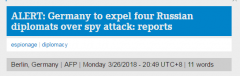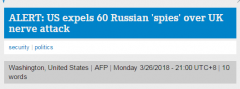 法新社3月26日最新消息称,美国因英俄双重间谍中毒一事,将驱逐60名俄罗斯外交官。...