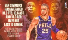 本西蒙斯近10场场均三双!他未来能否成为历史三