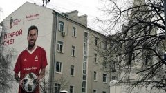 俄罗斯街头现梅西巨幅像 穿红色球衣为世界杯助威